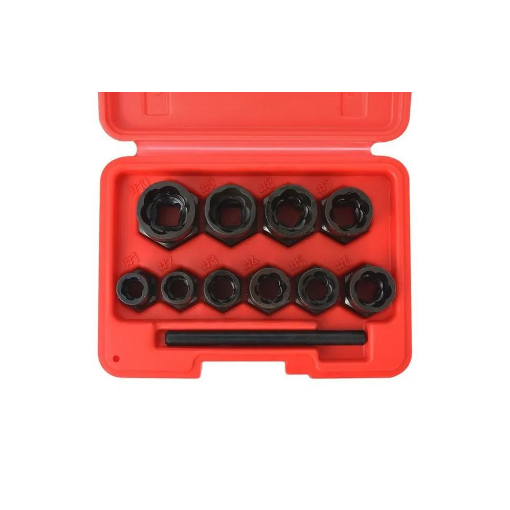 - 10 socluri de extragere șuruburi: 9, 10, 11, 12, 13, 14, 15, 16, 17, 19 mm