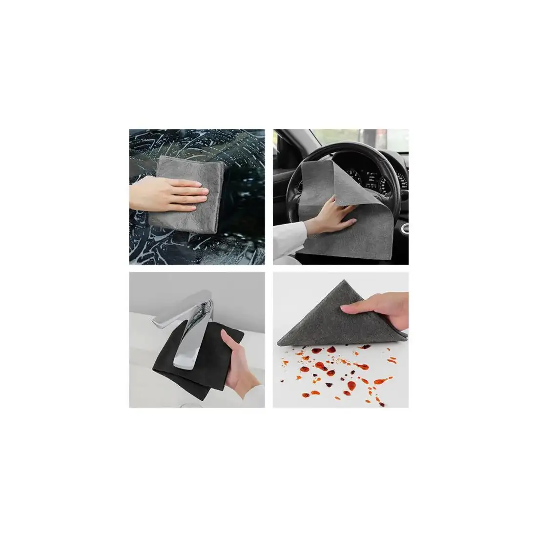Ridică praful, murdăria și uleiul de pe orice suprafață și lasă o strălucire fără pete într-o singură trecere, fără a folosi substanțe chimice.
