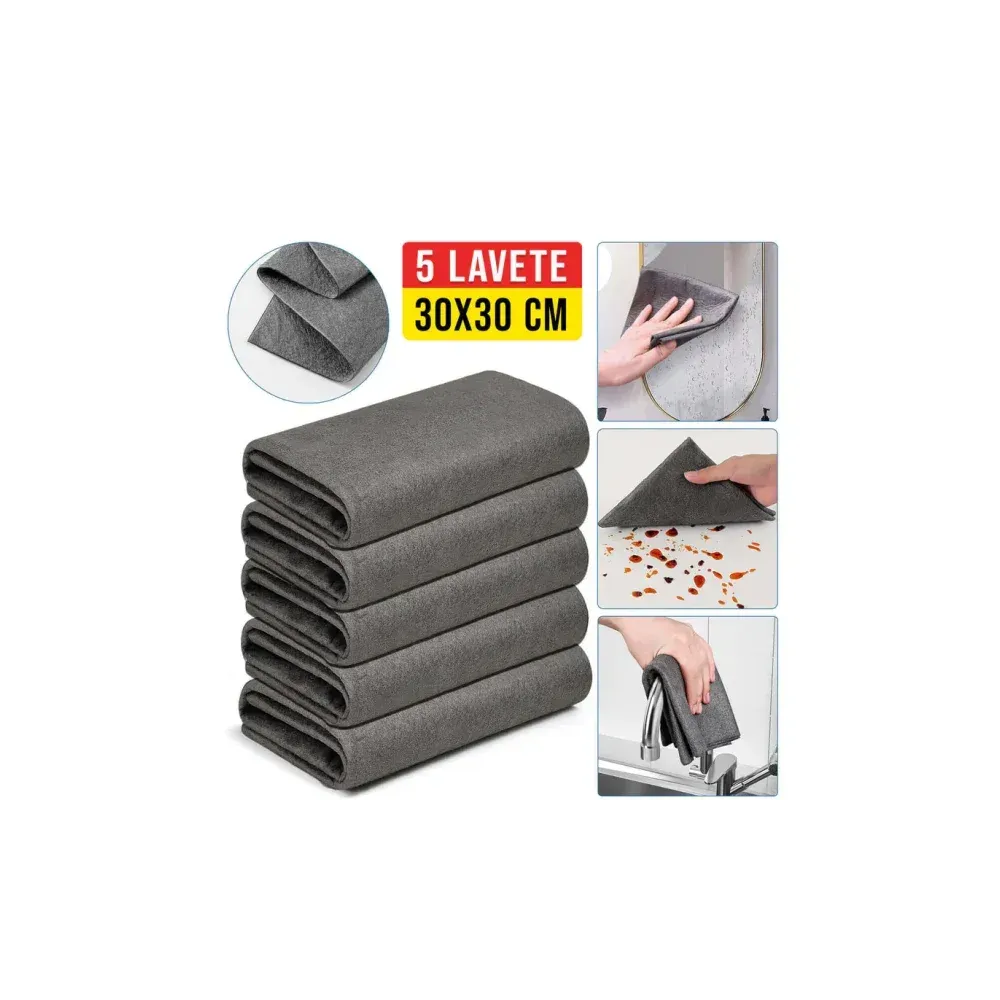 Set 5 Lavete Magice, Curatare Fara Scame si Zgarieturi, Material Microfibra, 30x30 cm