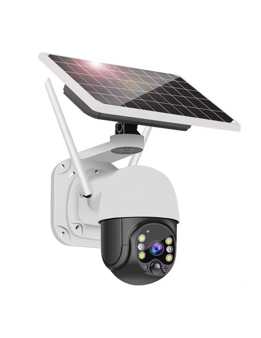 Panou Solar Integrat: Echipată cu un panou solar, camera poate fi alimentată prin energie solară, asigurând o sursă de energie constantă și reducând necesitatea de a schimba frecvent bateriile sau de a avea conexiuni la rețeaua electrică.