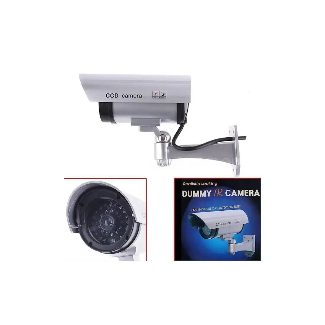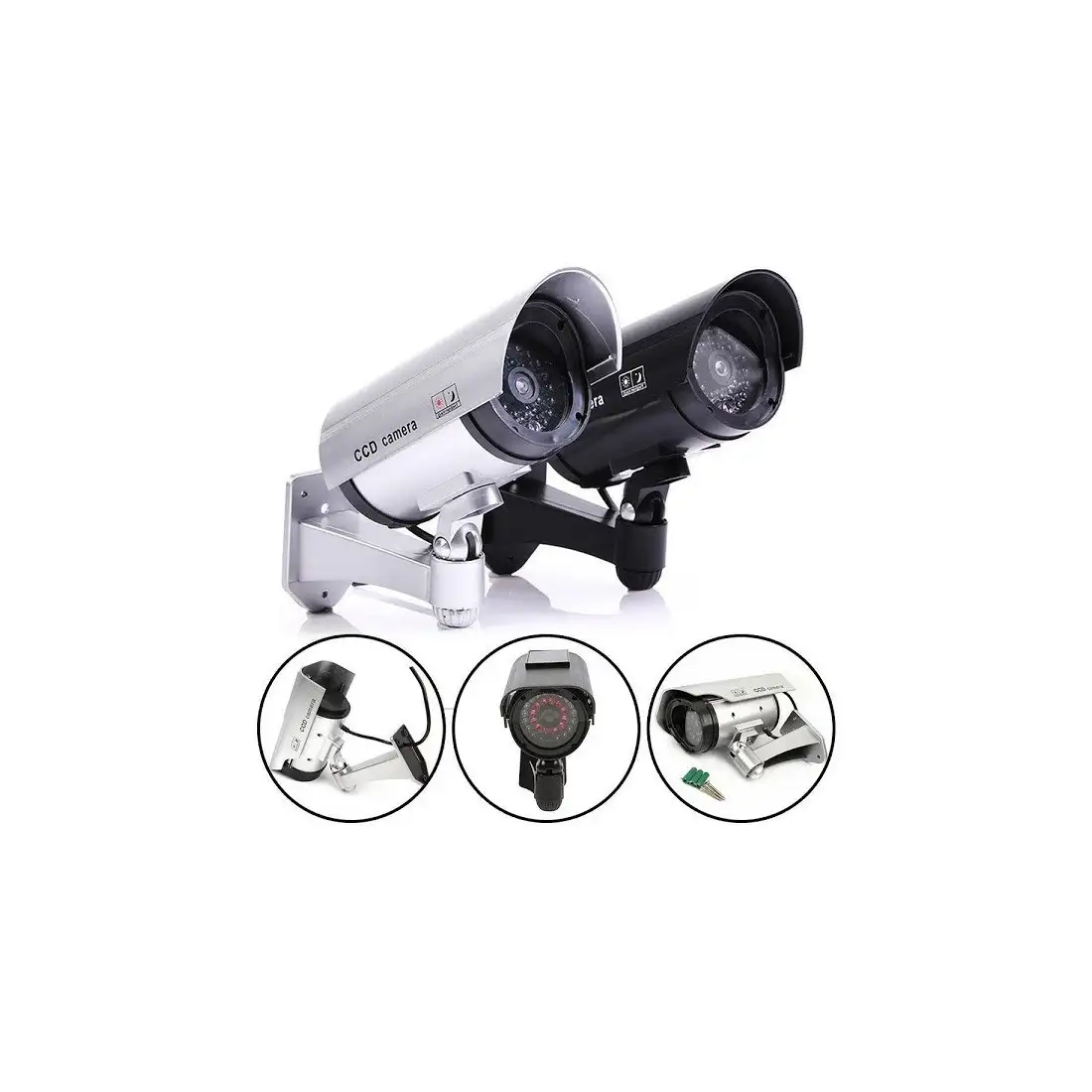 Set 4 camere de supraveghere Dummy cu aspect profesional, credibil, LED incorporat, ideala pentru intimidarea hotilor. Arata exact ca o camera profesionala. Nu necesita instalare complicata, fixandu-se cu suruburi, fara