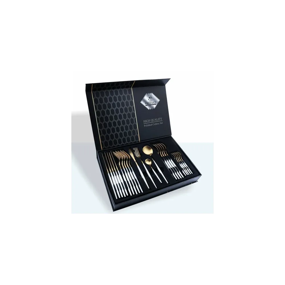 Set 24 de tacamuri, 6 persoane, otel inoxidabil, Alb