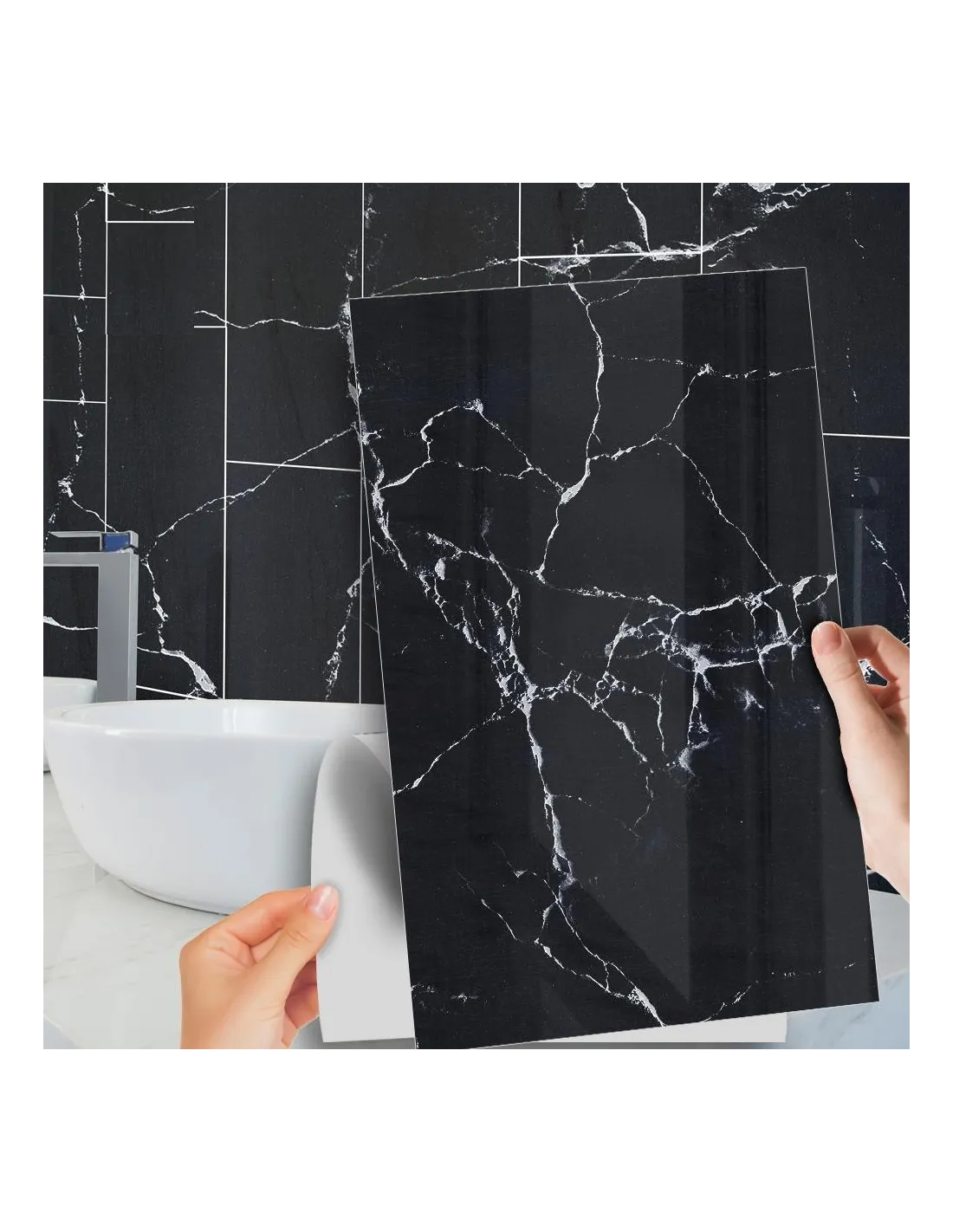 Set 10 x placi autoadezive pentru perete tip marmura, culoare negru , impermeabila 30 x 60 cm