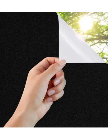 Folia pentru geamuri opace este realizata din material PVC de inalta calitate si blocheaza orice patrundere a luminii, in timp ce camera se intuneca.Foloseste o tehnologie vitrostatica innovatoare ce permite montarea si demontarea facila care se bazeaza pe proprietatile electrostatice ale materialului si grosimea sa.