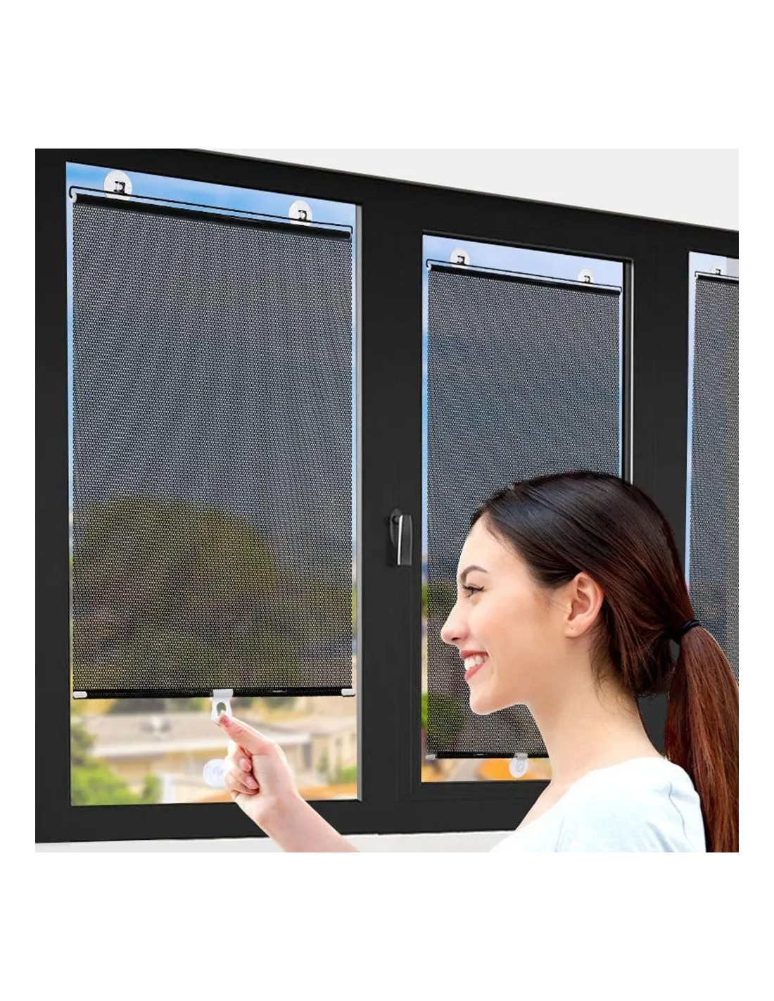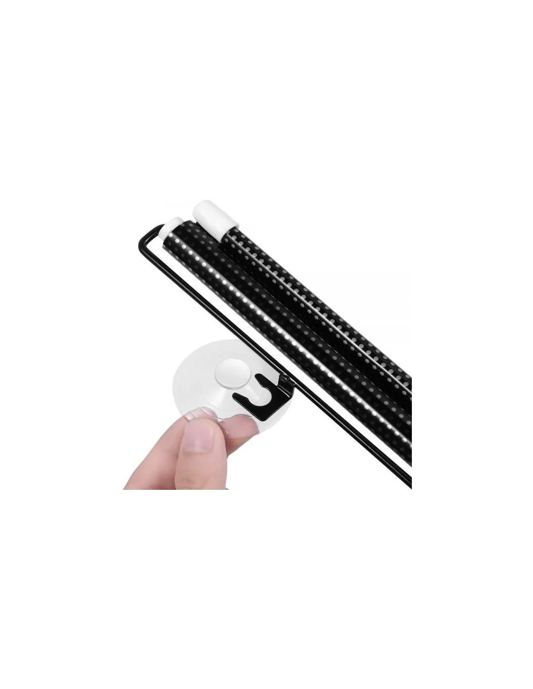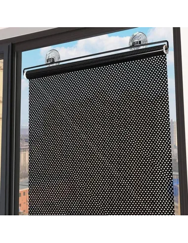 Ruloul de tip jaluzea poate fi fixat in pozitie extinsa prin agatarea de ventuza si folosirea unei incuietori. Metoda de perforare a materialului asigura absorbtia a aproximativ 70% din razele soarelui. Dimensiune: Latime 45 cm x Lungime 125 cm.