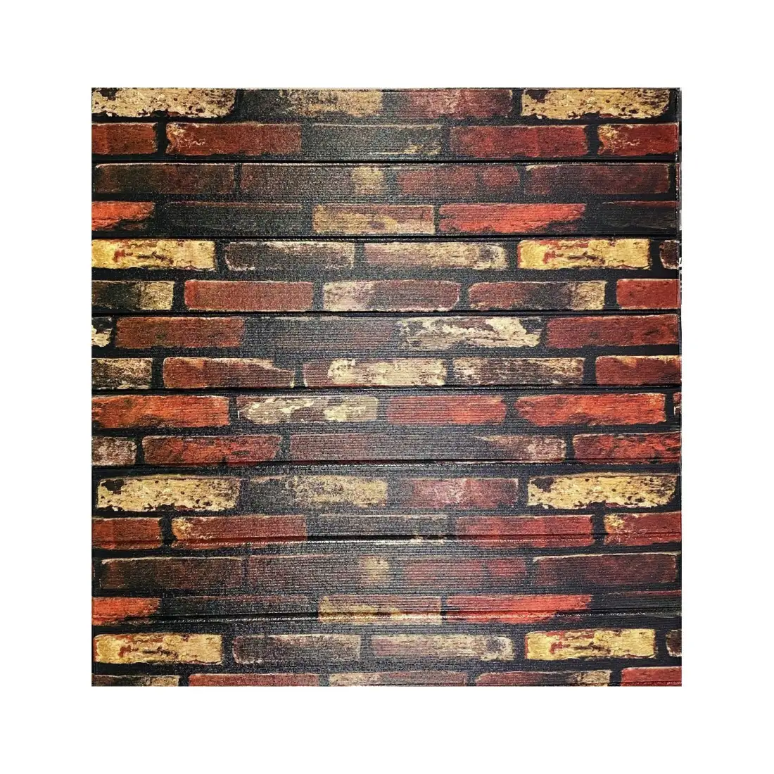 Tapet 3D autoadeziv caramizi rosu cu negru, 77 x 70 cm, spuma moale
