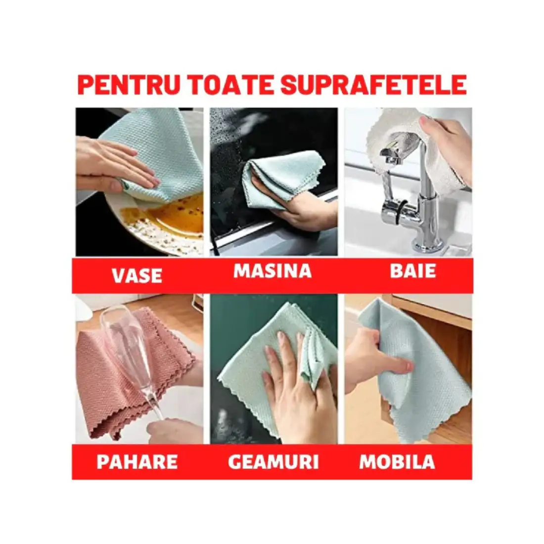 Aceste lavete din microfibra nu sunt abrazive si nu au scame. Rolul produselor este de a capta muraria si praful greu de observat. Lavetele pot fi utilizate pe o varietate de suprafete.