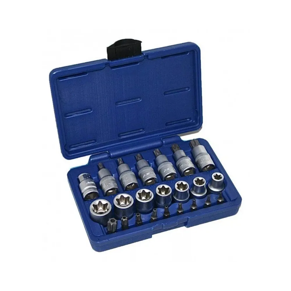 Aceasta TRUSA CHEI TUBULARE BITI PROFIL E TORX 1/2 23 PIESE are o carcasa din plastic cu doua structuri albastru-cenusiu din plastic cu un interior special profilat pentru instrumentele din interior. Carcasa este realizata dintr-un material rezistent la substante chimice.