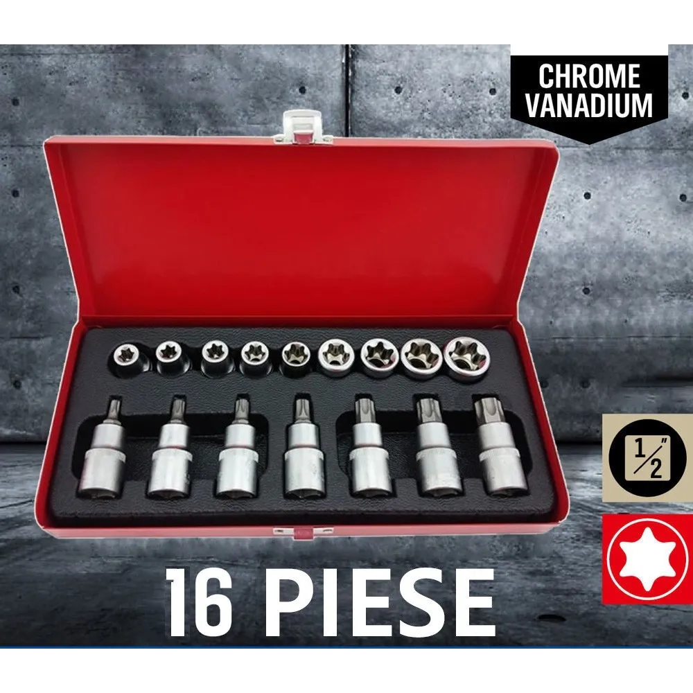 Trusa 16 piese chei tubulare torx si capete biti torx
