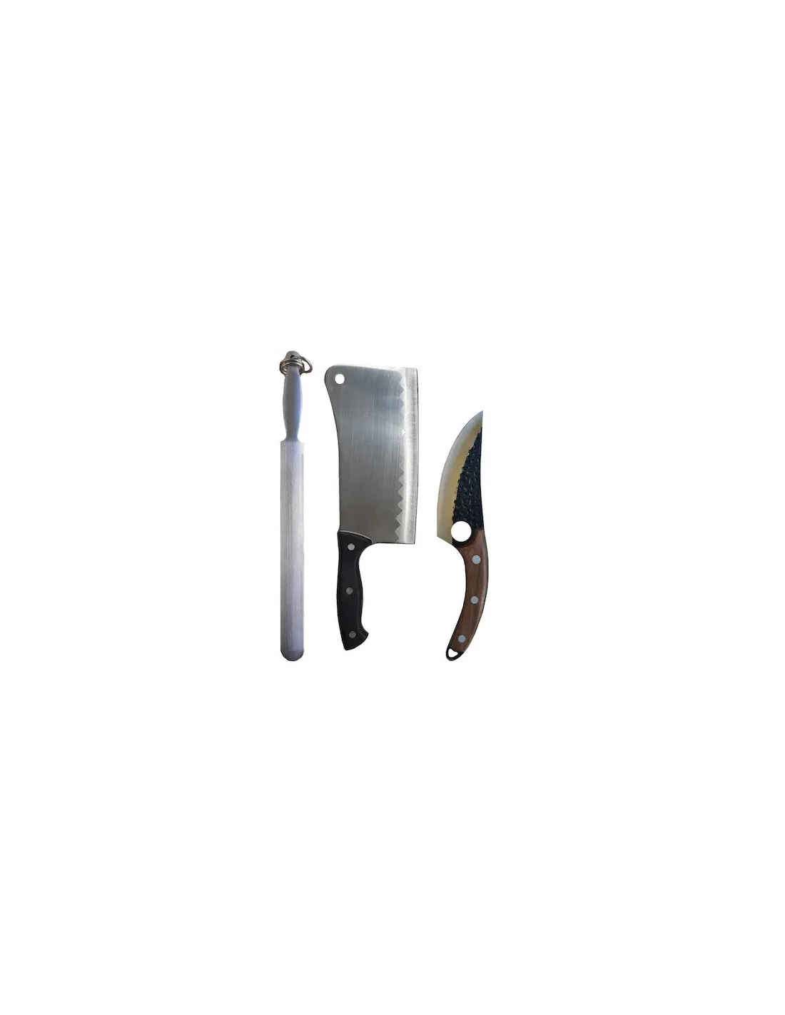 Set Profesional pentru macelarie format din Satar 800g, pila pentru ascutit si Cutit universal 27 cm Full Tang