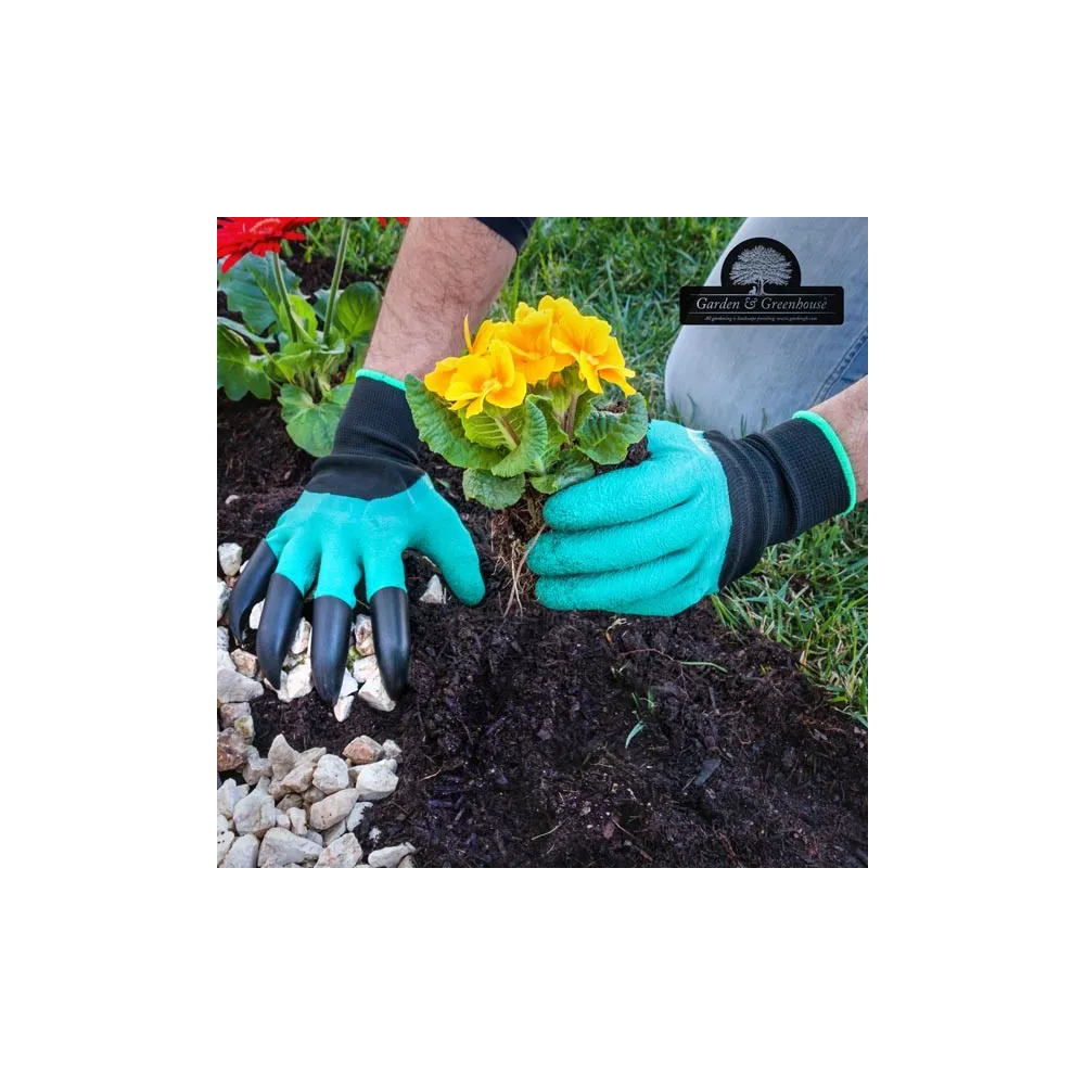 Manusile de gradinarit si sapat cu 4 gheare Garden & Greenhouse Foarte practice si comode pentru a sapa si grebla In gradina si pentru a planta seminte, deoarece una dintre manusi dispune de 4 gheare din plastic rezistent la varfuri ce usureaza excavarea In pamant, In plus, aceste manusi inovatoare protejeaza mainile la realizarea treburilor de gradinarit, Avantaje manusi Garden & Greenhouse: - Design original si functional- Rezistente si durabile- Fabricate din latex, poliester si polipropilena