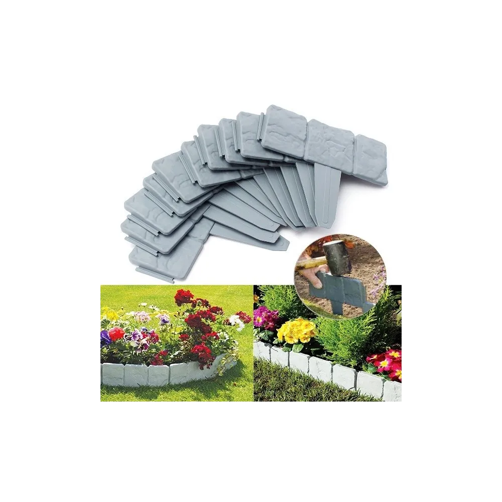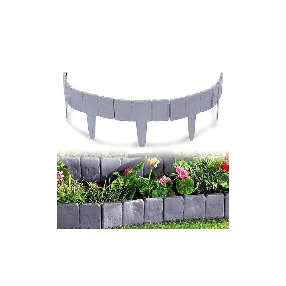 Doriti sa construiti repede o bordura din piatra? Improspatati aspectul gradinii dumneavoastra cu acest set de 20 de borduri cu aspect de piatra. Cele 20 de elemente se pot asambla usor fara probleme iar varfurile vor asigura o buna stabilitate.