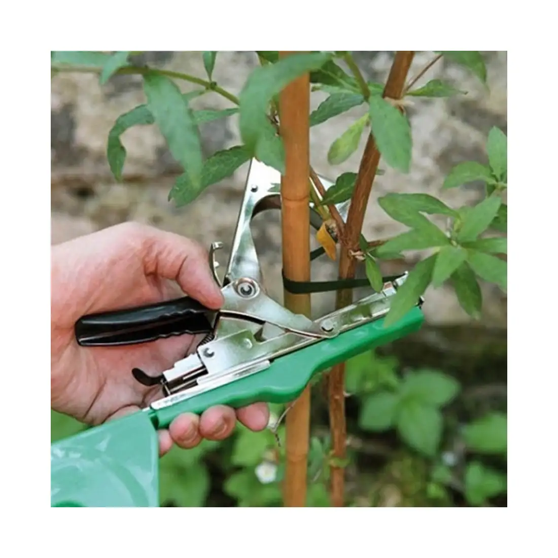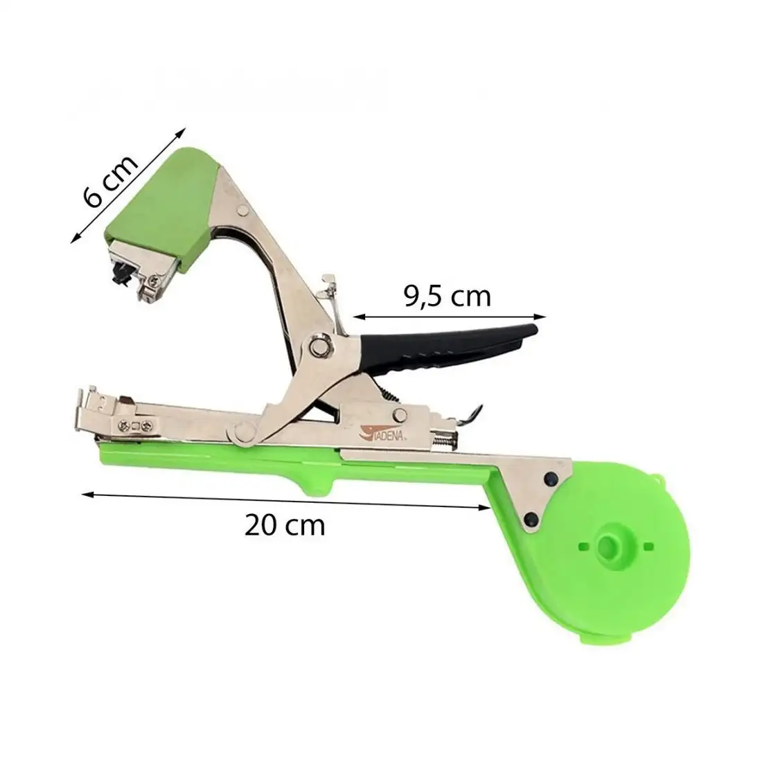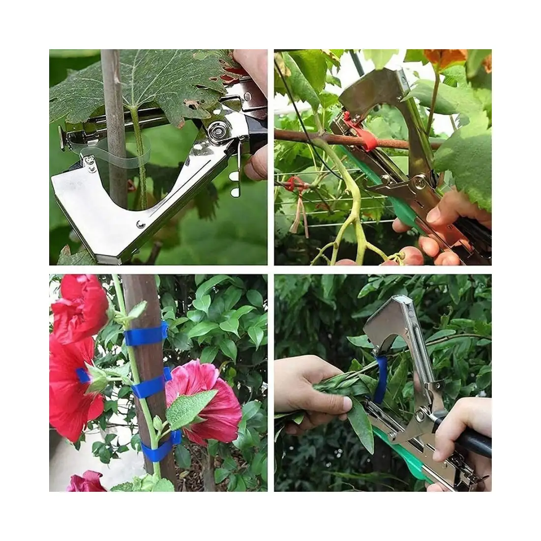 Dispozitivul folosește bandă din polipropilenă și capse, asigurând o prindere sigură a plantelor fără a le deteriora. Este ideal pentru legarea plantelor cățărătoare sau a celor care necesită susținere în timpul creșterii.