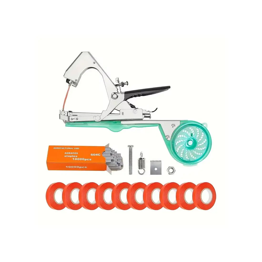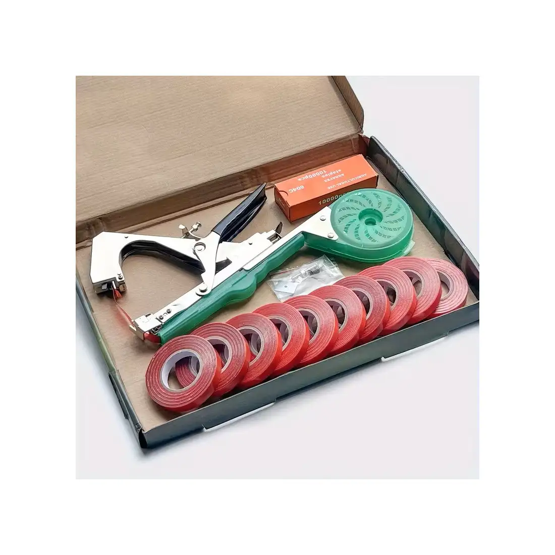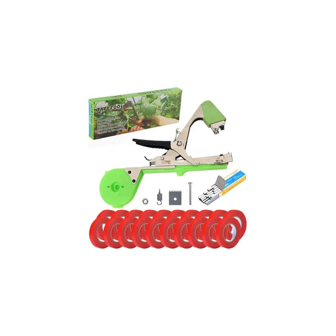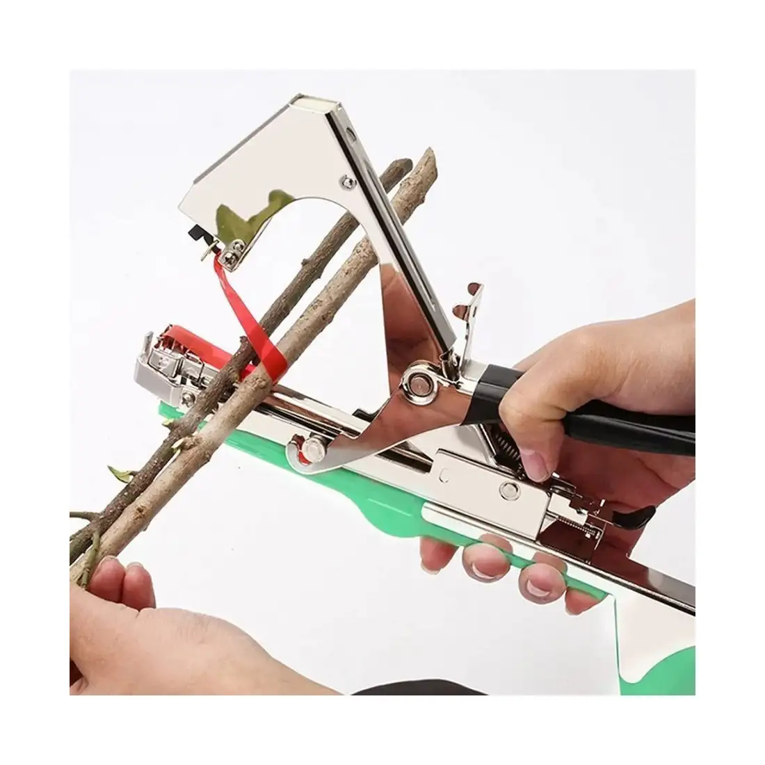 Dispozitivul folosește bandă din polipropilenă și capse, asigurând o prindere sigură a plantelor fără a le deteriora. Este ideal pentru legarea plantelor cățărătoare sau a celor care necesită susținere în timpul creșterii.