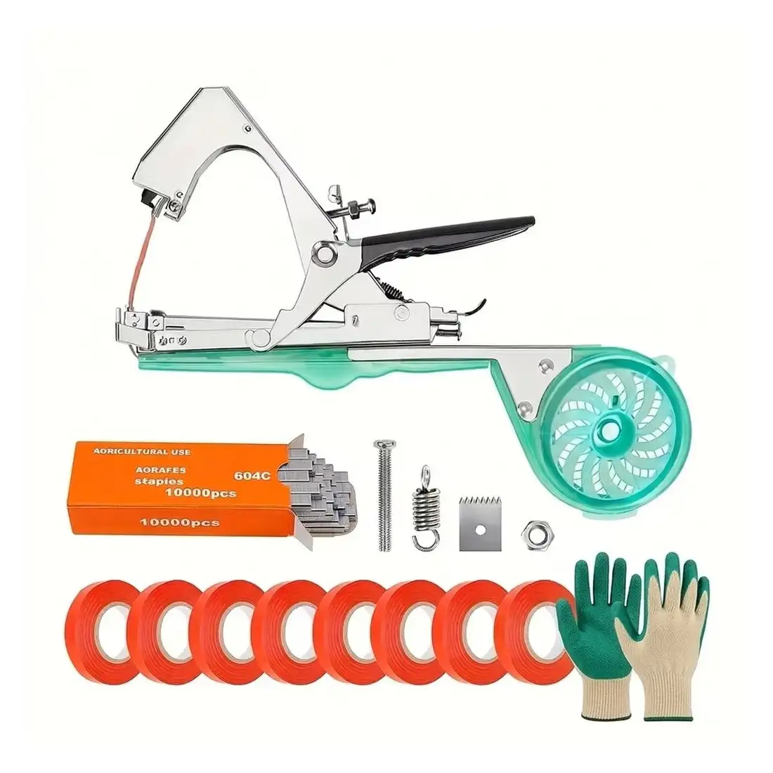 Aparatul pentru legat plante este un instrument practic și eficient, conceput pentru a facilita fixarea rapidă a plantelor pe suporturi sau spalieri.
