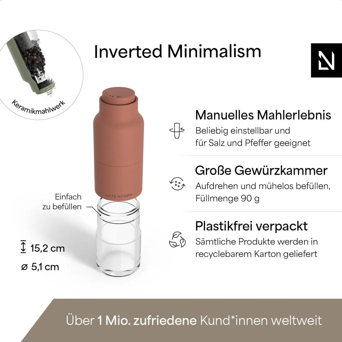 Set 2 Rasnite, Sare si Piper, LARS NYSØM, Ceramica Ajustabila Otel Inoxidabil, Rosu/Verde, manuale