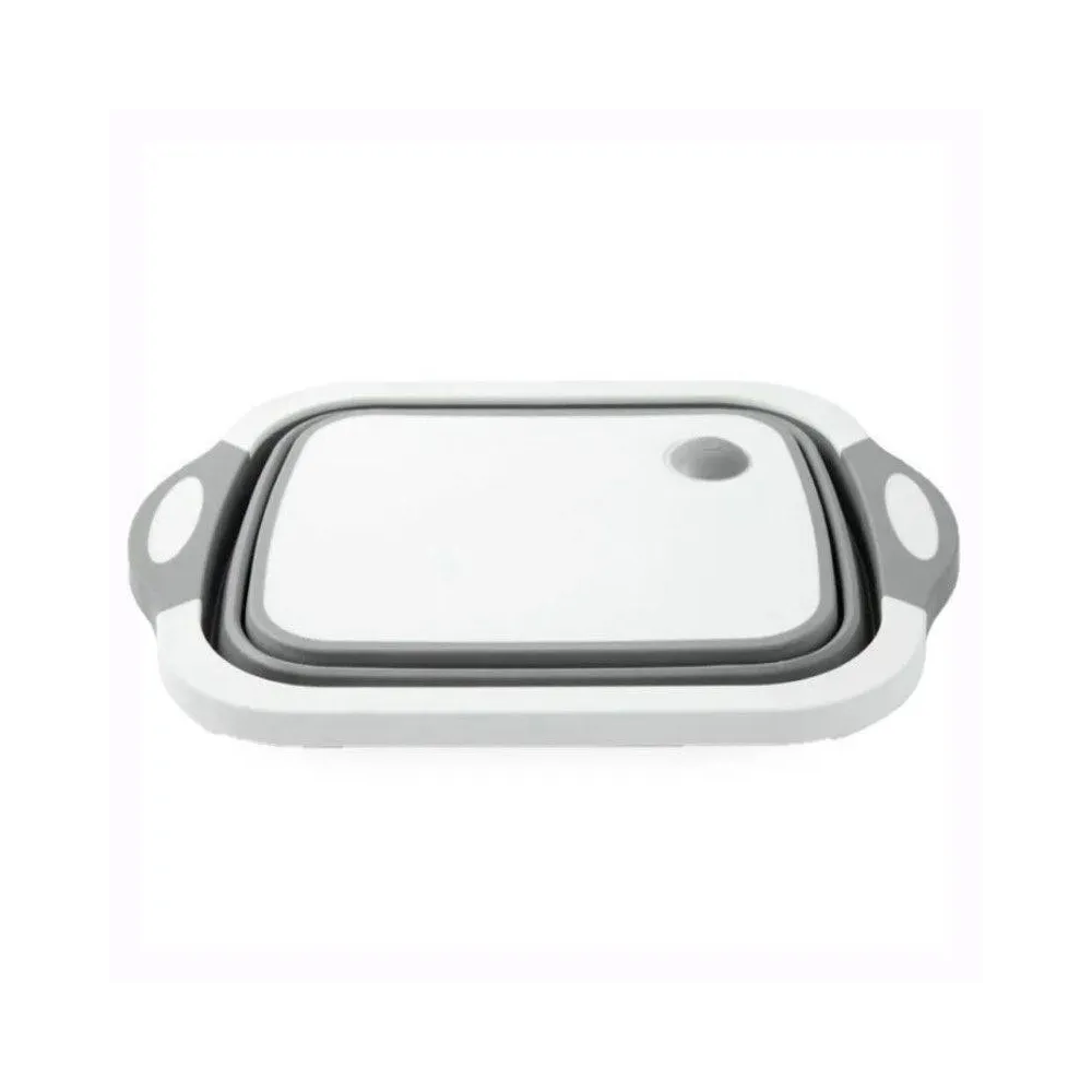 Tocator multifunctional, pliabil, cu dop, 40 x 30 x 3 cm, culoare alb/gri