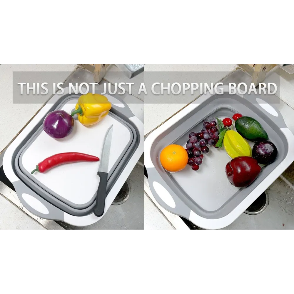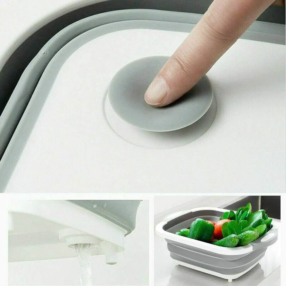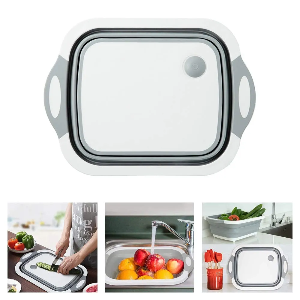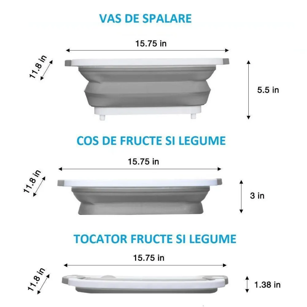 Acest recipient este extrem de util in orice bucatarie, dar mai ales in camping si picnic. Cu ajutorul acestuia puteti spala alimentele (are dop de scurgere), servi, dar si toca. Ocupa extrem de putin loc, are 2 dimensiuni in varianta castron, iar tocatorul are sant de adunare a lichidului scurs. Are manere, dar si picioruse aderente, anti-alunecare. Realizat din polipropilena si silicon.