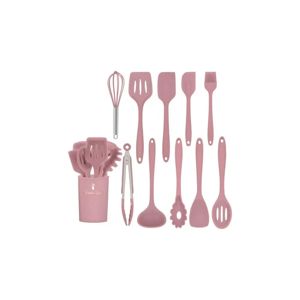 Set 11 ustensile din silicon, pentru gatit - Roz