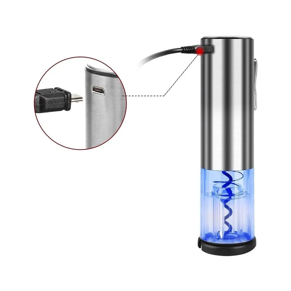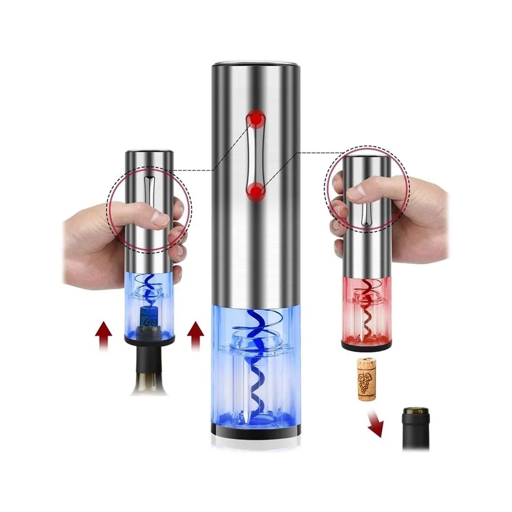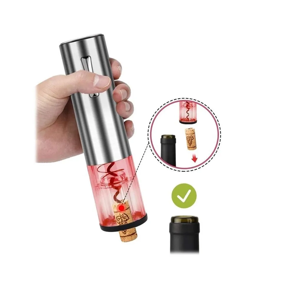 Cu acest dispozitiv, puteți deschide sticlele de vin fără efort. Poate fi utilizat cu orice sticlă cu o lățime a gâtului de până la 35mm, și are un acumulator care permite până la 50 de utilizări. Inclus în cutie este un cutter de folie, precum și un cablu de încărcare MicroUSB.