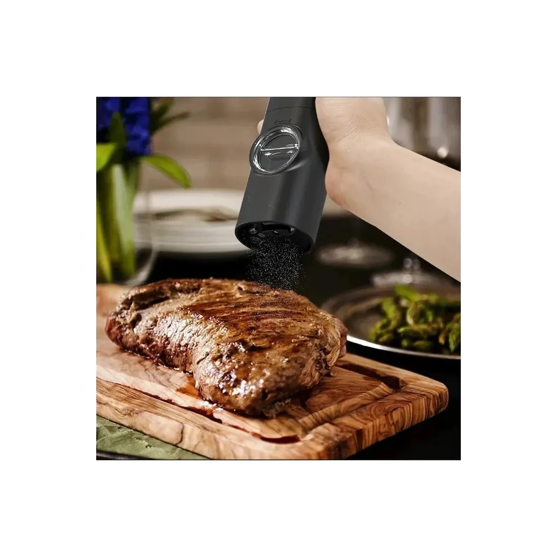 Rasnita electrica cu inductie gravitationala care iti aduce preciziune si eleganta in fiecare preparat culinar. — Odata activata prin simpla inclinare, aceasta rasnita iti ofera sare, piper sau condimente proaspete si tocate perfect, direct in farfurie, fara efort. Bucataria ta se transforma intr-un loc de creatie, nu de munca.
