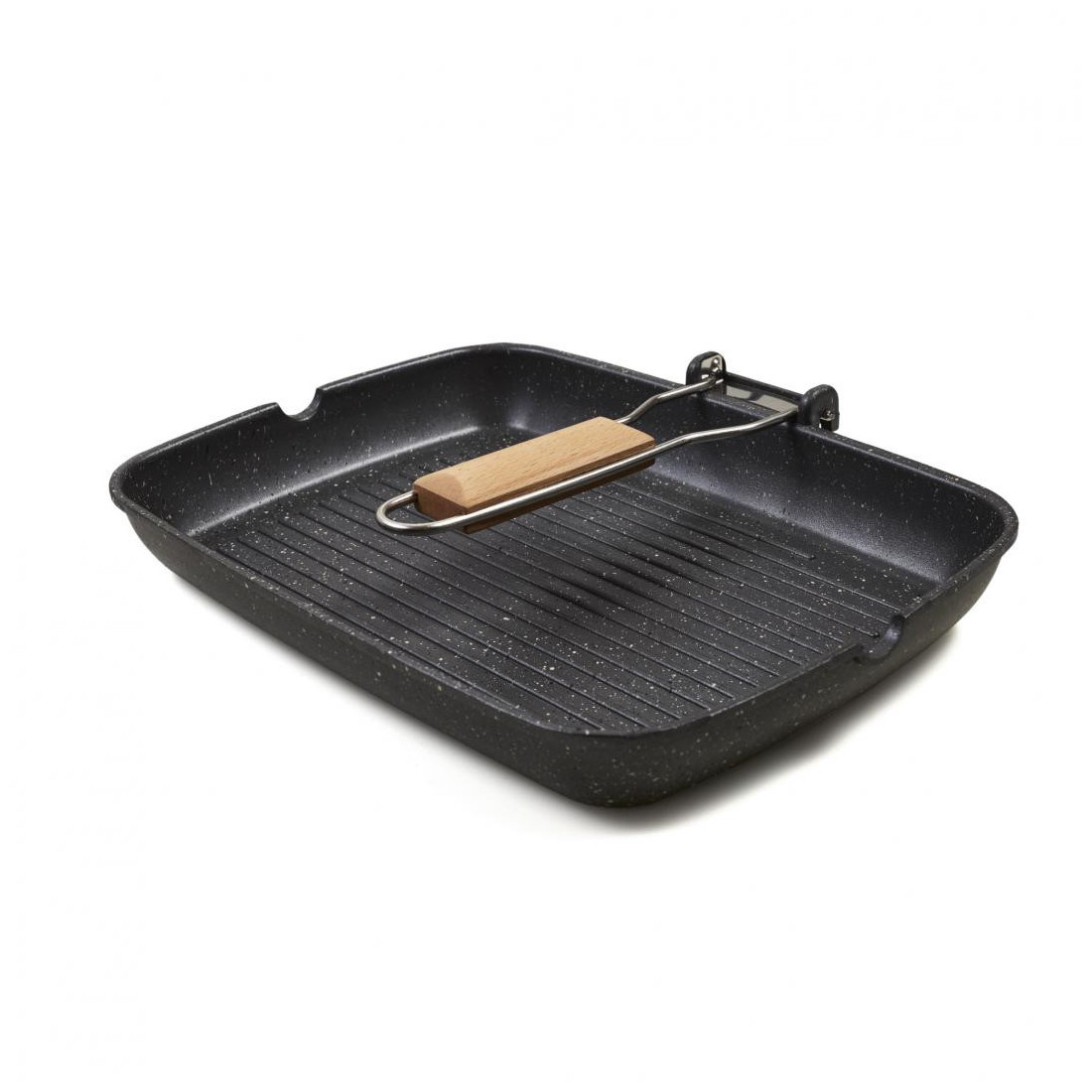 Tigaia grill din aluminiu este ideală pentru prepararea rapidă și sănătoasă a cărnii, legumelor sau peștelui. Datorită suprafeței speciale cu acoperire non-stick cu puncte de granit, alimentele nu se lipesc, iar gătitul necesită o cantitate redusă de ulei.